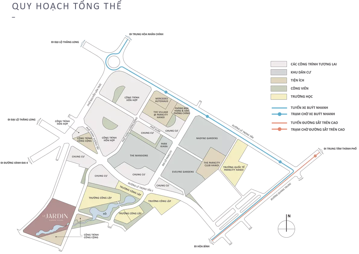 Biệt thự Le Jardin nằm trong quần thể khu đô thị ParkCity Hanoi, trên đường phố Thịnh Vượng Đông nối thẳng ra đường Lê Trọng Tấn. Khách hàng dễ dàng di chuyển đến: