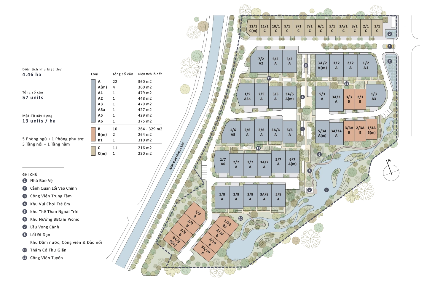 - Diện tích tiểu khu Le Jardin: 4.5 ha
