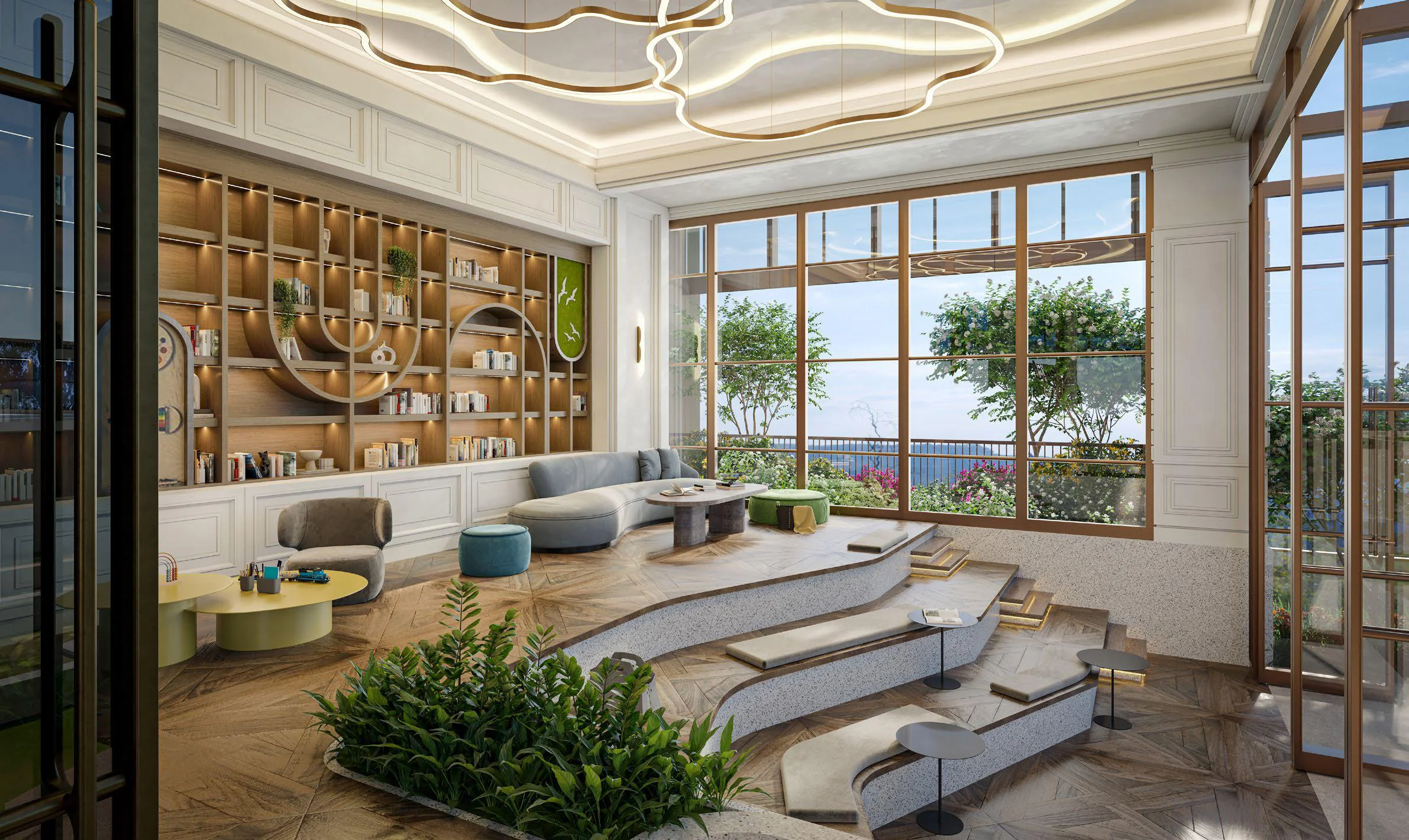Nếu tầng 1 tập trung vào đón tiếp và kỹ thuật, thì tầng 5 chính là “trái tim” tiện ích của dự án, nơi tập trung các hoạt động thư giãn, giải trí và chăm sóc sức khỏe cho cư dân.