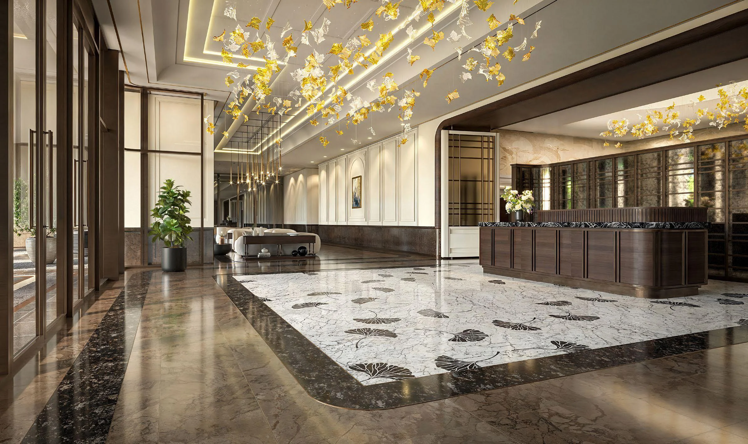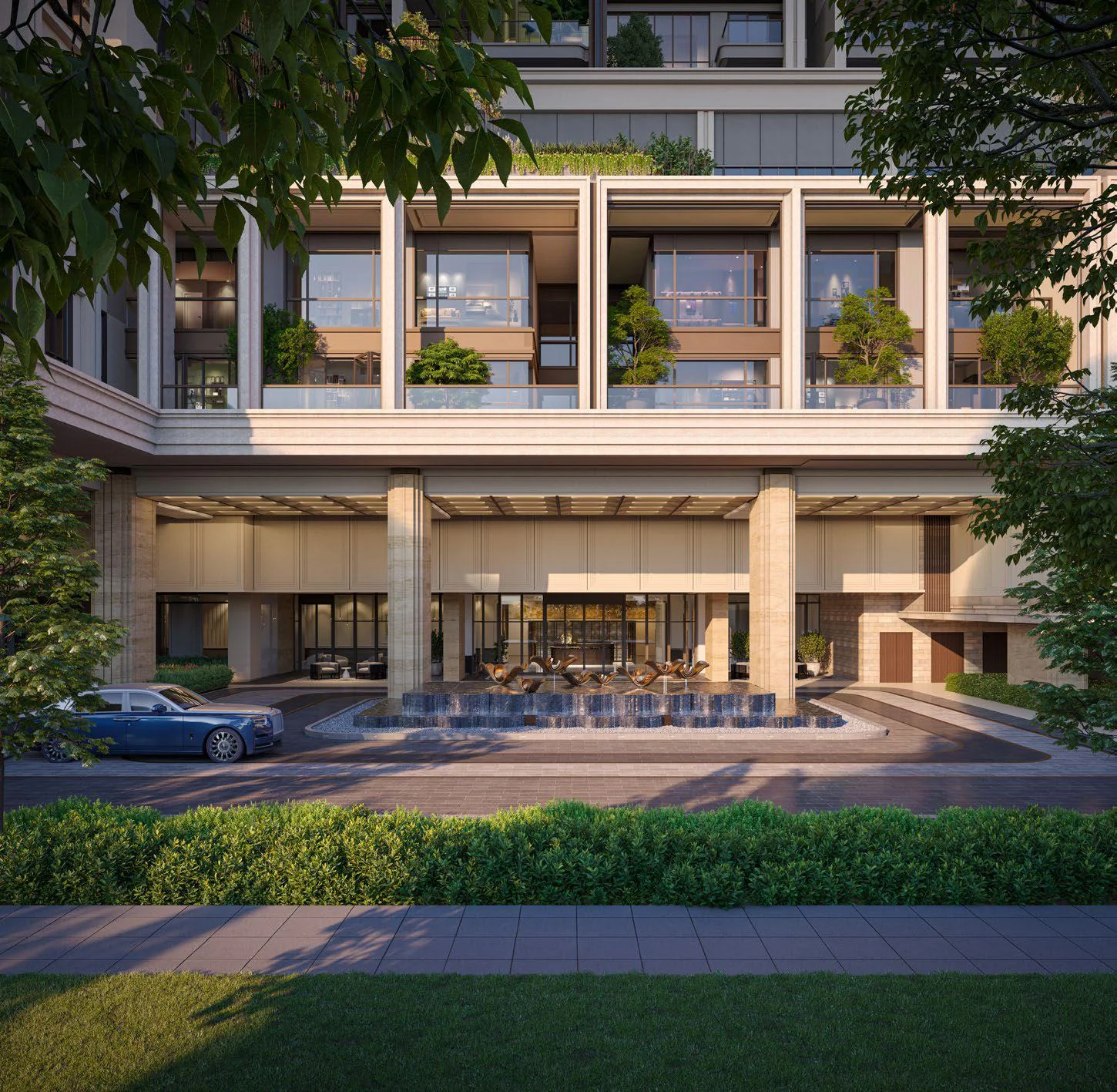 Vườn lối vào sang trọng (Tòa 1/ tòa 2 sảnh đón cao 2 tầng) – khẳng định vị thế ngay từ bước chân đầu tiên.