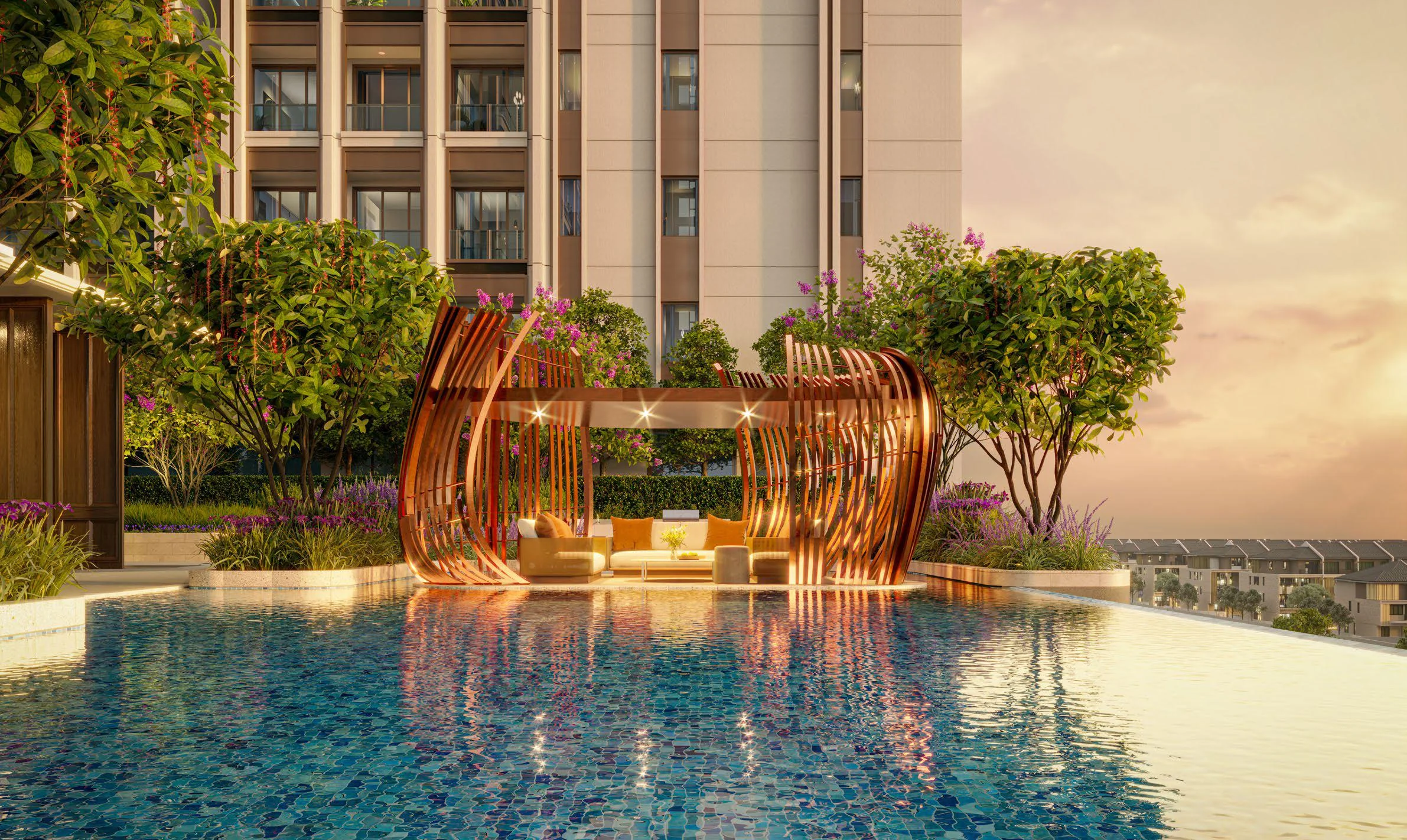 Sundeck & Hồ bơi – tận hưởng trọn vẹn nắng vàng, làn nước trong xanh và nhịp sống thư giãn.